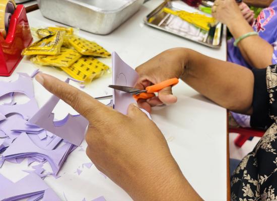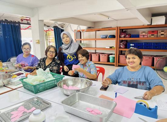 ศกร.ระดับตำบลพิมาน จัดโครงการศูนย์ฝึกอาชีพชุมชน รูปแบบกลุ่มสนใจ หลักสูตรการทำดอกไม้จันทน์