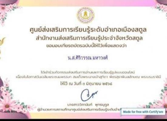ศกร.ระดับตำบลพิมาน เข้าร่วมกิจกรรมส่งเสริมการอ่านและการเรียนรู้แบบทดสอบออนไลน์ เนื่องในโอกาสวันเฉลิมพระชนมพรรษพระชนมพรรษา สมเด็จพระนางเจ้าสุทิดา พัชรสุธาพิมลลักษณ พระบรมราชินี วันที่ 3 มิถุนายน 2568