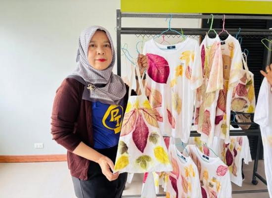 ศกร.ระดับตำบลควนโพธิ์ นิเทศงานการเรียนรู้เพื่อการพัฒนาตนเองโครงการศูนย์ฝึกอาชีพชุมชน รูปแบบกลุ่มสนใจ หลักสูตรกระเป๋าผ้า eco print