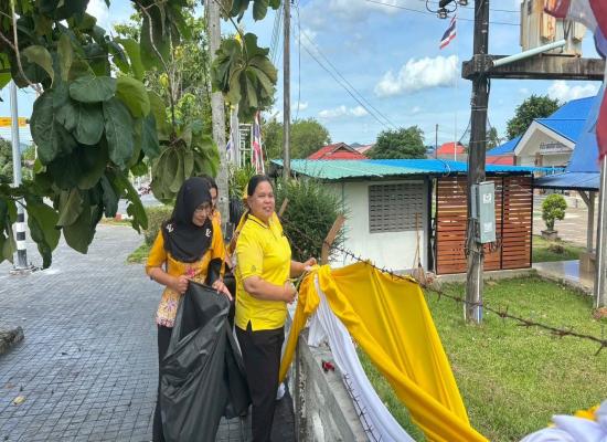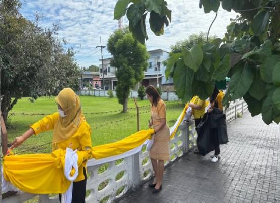 ศกร.ระดับตำบลเจ๊ะบิลัง ร่วมกิจกรรมประดับธงชาติคู่กับธงพระนามาภิไธย ส.ท. พระฉายาลักษณ์สมเด็จพระนางเจ้าฯ พระบรมราชินี ตั้งเครื่องราชสักการะ ประดับผ้าระบายสีม่วงร่วมกับผ้าระบายสีขาว