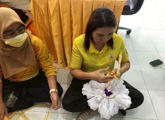 ศกร.ระดับตำบลควนขัน ร่วมกิจกรรมประดับธงชาติคู่กับธงพระนามาภิไธย ส.ท. พระฉายาลักษณ์สมเด็จพระนางเจ้าฯ พระบรมราชินี ตั้งเครื่องราชสักการะ ประดับผ้าระบายสีม่วงร่วมกับผ้าระบายสีขาว