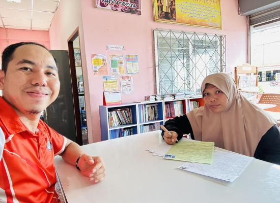 ครูอาสาสมัครการศึกษานอกโรงเรียน ประจำสถาบันศึกษาปอเนาะ ดำเนินการจัดกิจกรรม ส่งเสริมการวิเคราะห์ และการอ่านอย่างเป็นกระบวนการ โดยผู้บริหารและครูเป็นต้นแบบ ภายใต้กิจกรรม \'\'Tell me more\" วันที่ 22 เมษายน 2568 นางสาวลาตีฟา ละใบแด ครูอาสาสมัครการศ