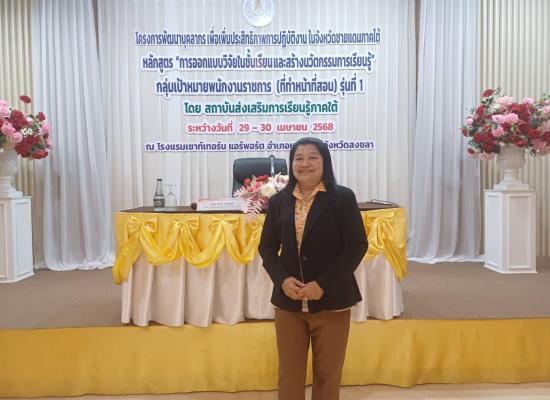 ศูนย์ส่งเสริมการเรียนรู้ระดับอำเภอทุ่งหว้า เข้าร่วมโครงการพัฒนาบุคลากรเพื่อเพิ่มประสิทธิภาพการปฏิบัติงานในชายแดนใต้หลักสูตร การออกแบบวิจัยในชั้นเรียนและสร้างนวัตกรรมการเรียนรู้ กลุ่มเป้าหมายพนักงานราชการ (ที่ทำหน้าที่สอน) รุ่นที่ 1 |