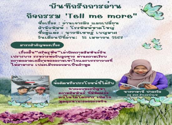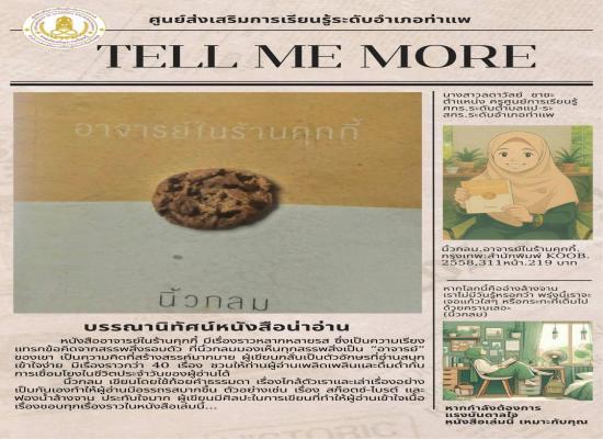 สกร.ระดับอำเภอท่าแพ ดำเนินการจัดกิจกรรม ส่งเสริมการวิเคราะห์ และการอ่านอย่างเป็นกระบวนการ โดยผู้บริหารและครูเป็นต้นแบบ ภายใต้กิจกรรมกิจกรรม \'\'Tell me more\"