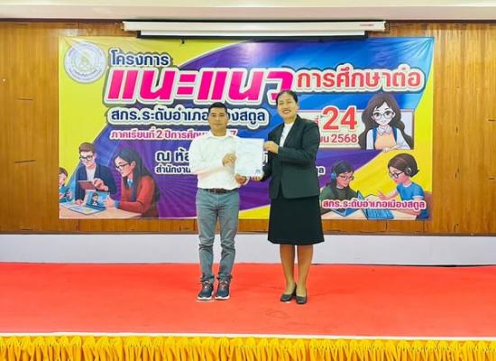 ศกร.ระดับตำบลเจ๊ะบิลัง เข้าร่วมโครงการแนะแนวการศึกษาต่อ ภาคเรียนที่ 2 ปีการศึกษา 2567 สกร.ระดับอำเภอเมืองสตูล