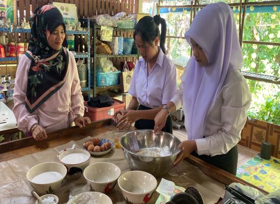 ศกร.ระดับตำบลนาทอน ศึกษาแหล่งเรียนรู้ขนมไทยโบราณในพื้นที่ตำบลนาทอน และจัดทำ Content ประชาสัมพันธ์ขนมไทยโบราณสู่ Soft Power ณ บ้านปาล์มบาติก