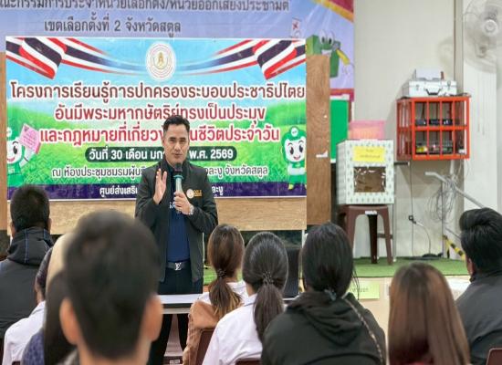 สกร.ระดับอำเภอละงู จัดกิจกรรมพัฒนาผู้เรียน โครงการเรียนรู้การปกครองระบอบประชาธิปไตย อันมีพระมหากษัตริย์ทรงเป็นประมุข และกฎหมายที่เกี่ยวข้องในชีวิตประจำวัน