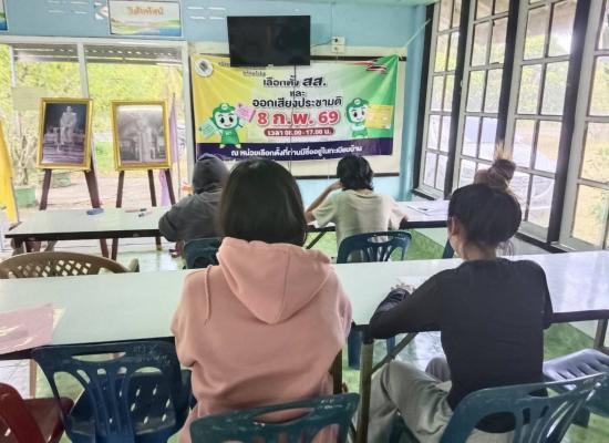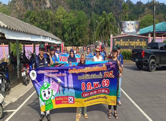 ศูนย์ส่งเสริมการเรียนรู้ระดับตำบลนาทอน บ่อหินจัดกิจกรรมเดินรณรงค์ให้ประชาชนออกมาใช้สิทธิ์ออกเสียงเลือกตั้งโครงการส่งเสริมหน้าที่พลเมืองและประชาธิปไตย