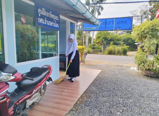 สกร.ระดับอำเภอควนโดน ศกร.ระดับตำบลควนโดน ร่วมกันทำความสะอาด ศกร.ระดับตำบล