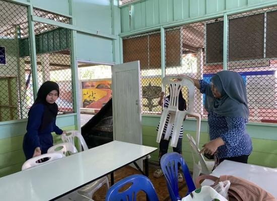 างสาววิภานันท์ พุทธนุกูล ผู้อำนวยการสถานศึกษาศูนย์ส่งเสริมการเรียนรู้ระดับอำเภอเมืองสตูล มอบหมายให้ครูศูนย์การเรียนรู้ รับมอบของบริจาคอุปกรณ์ทำความสะอาดจากนักศึกษา เพื่อใช้งานและส่งมอบต่อให้กับสถานที่ศาสนสถานในชุมชน ตำบลคลองขุด ณ ศกร.ระดับตำบลคลองขุด อำเภ |