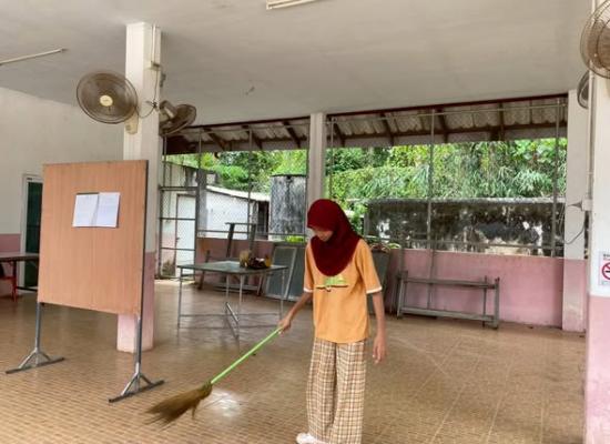 ศกร.ระดับตำบลตำมะลัง ทำความสะอาดภายใน ศกร.ระดับตำบล