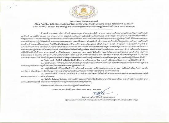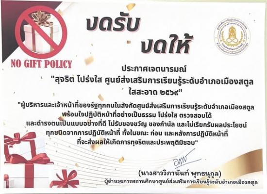 การประกาศเจตนารมณ์ เรื่อง \"สุจริต โปร่งใส ศูนย์ส่งเสริมการเรียนรู้ระดับอำเภอเมืองสตูล ใสสะอาด ๒๕๖๙\" และ \"งดรับ งดให้\" ของขวัญ ของกำนัลทุกชนิดจากการปฏิบัติหน้าที่ (NO Gift Policy)