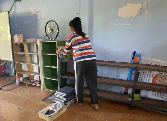 ศกร.ระดับตำบลบ้านควน ทำความสะอาดและจัดความเรียบร้อยของหนังสือแบบเรียนเพื่อเช็คจำนวนแบบเรียนคงเหลือ
