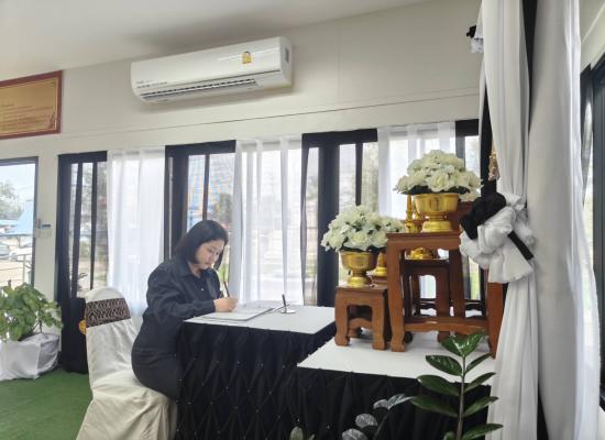 บรรณารักษ์ ห้องสมุดประชาชนอำเภอควนโดนเข้าร่วมพิธีลงนามถวายความอาลัย สมเด็จพระนางเจ้าสิริกิติ์ พระบรมราชินีนาถ พระบรมราชชนนีพันปีหลวง