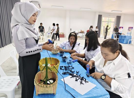 ศกร.ระดับตำบลเกาะสาหร่าย ร่วมประดิษฐ์ผีเสื้อจากผ้าไทยประจำถิ่นของจังหวัด เพื่อสนับสนุนการออกร้านนาวากาชาดของสมาคมแม่บ้านมหาดไทย ประจำปี 2568