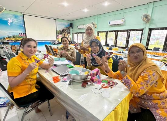 ศกร.ระดับตำบลบ้านควน ร่วมประดิษฐ์ผีเสื้อจากผ้าไทยประจำถิ่นของจังหวัด เพื่อสนับสนุนการออกร้านนาวากาชาดของสมาคมแม่บ้านมหาดไทย ประจำปี 2568