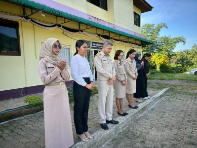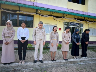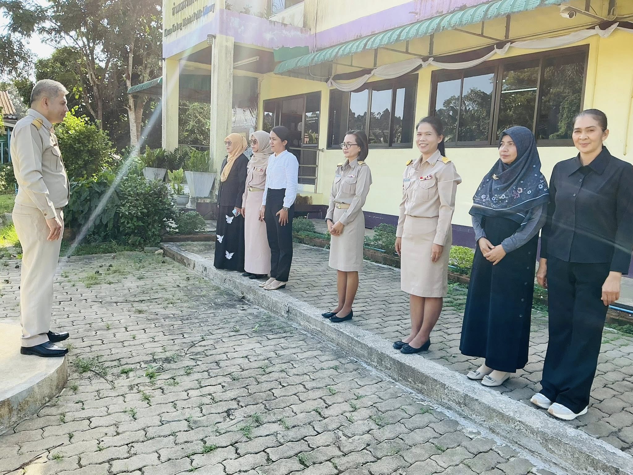 นางสาวสุนิษา นิติภัทร์ ผู้อำนวยการสถานศึกษา สกร.ระดับอำเภอควนโดนรักษาการในตำแหน่ง ผู้อำนวยการสถานศึกษา สกร.ระดับอำเภอควนกาหลงมอบหมายให้บุคลากรครู สกร.ระดับอำเภอควนกาหลงร่วมกิจกรรมเคารพธงชาติ และแสดงความสำนึกในพระคุณของชาติ ศาสนา และพระมหากษัตริย์ เพื่อปลูกฝังจิตสำนึกในการเป็นบุคลากรที่ดีขององค์กร แสดงความจงรักภักดีต่อสถาบันหลักของชาติ ตลอดจนเสริมสร้างความสามัคคีในหมู่บุคลากร ความซื่อสัตย์สุจริตในการปฏิบัติหน้าที่ และการยึดมั่นในคุณธรรม จริยธรรม และหลักธรรมาภิบาล
